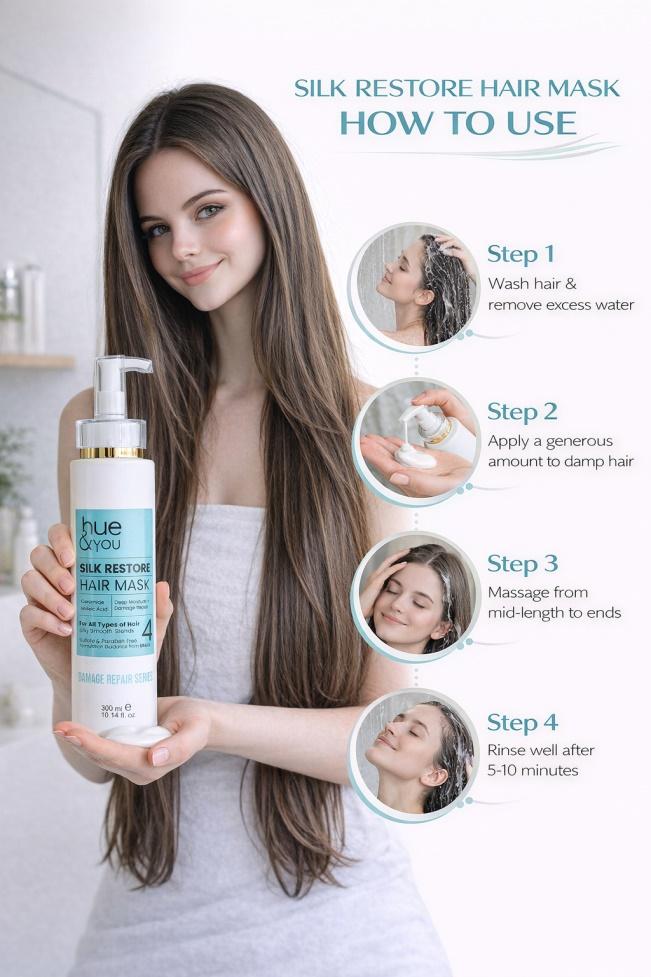 Silk Restore Hair Mask is a deeply nourishing treatment designed to revive